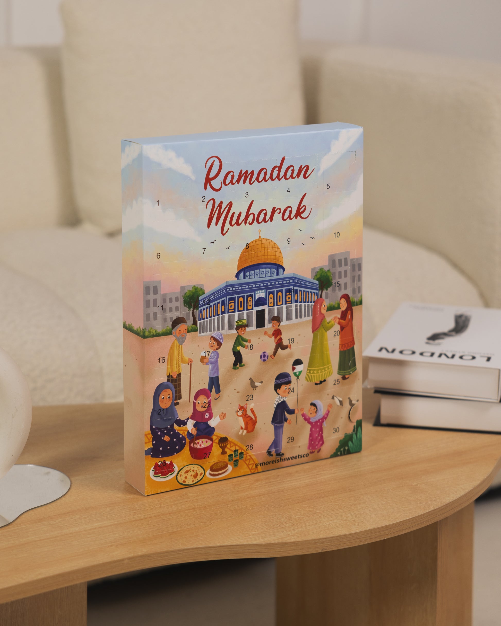 Introducing our Moreish Ramadan Sweet Calendar, designed to make each day of the holy month truly special. This unique calendar goes beyond the ordinary, combining the joy of discovering delicious treats with the spirit of giving through a daily good deed.